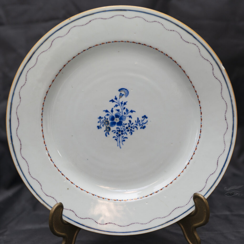 31. CHINESE EXPORT Famille Rose Plate 18th Century 乾隆粉彩蓝彩外销盘