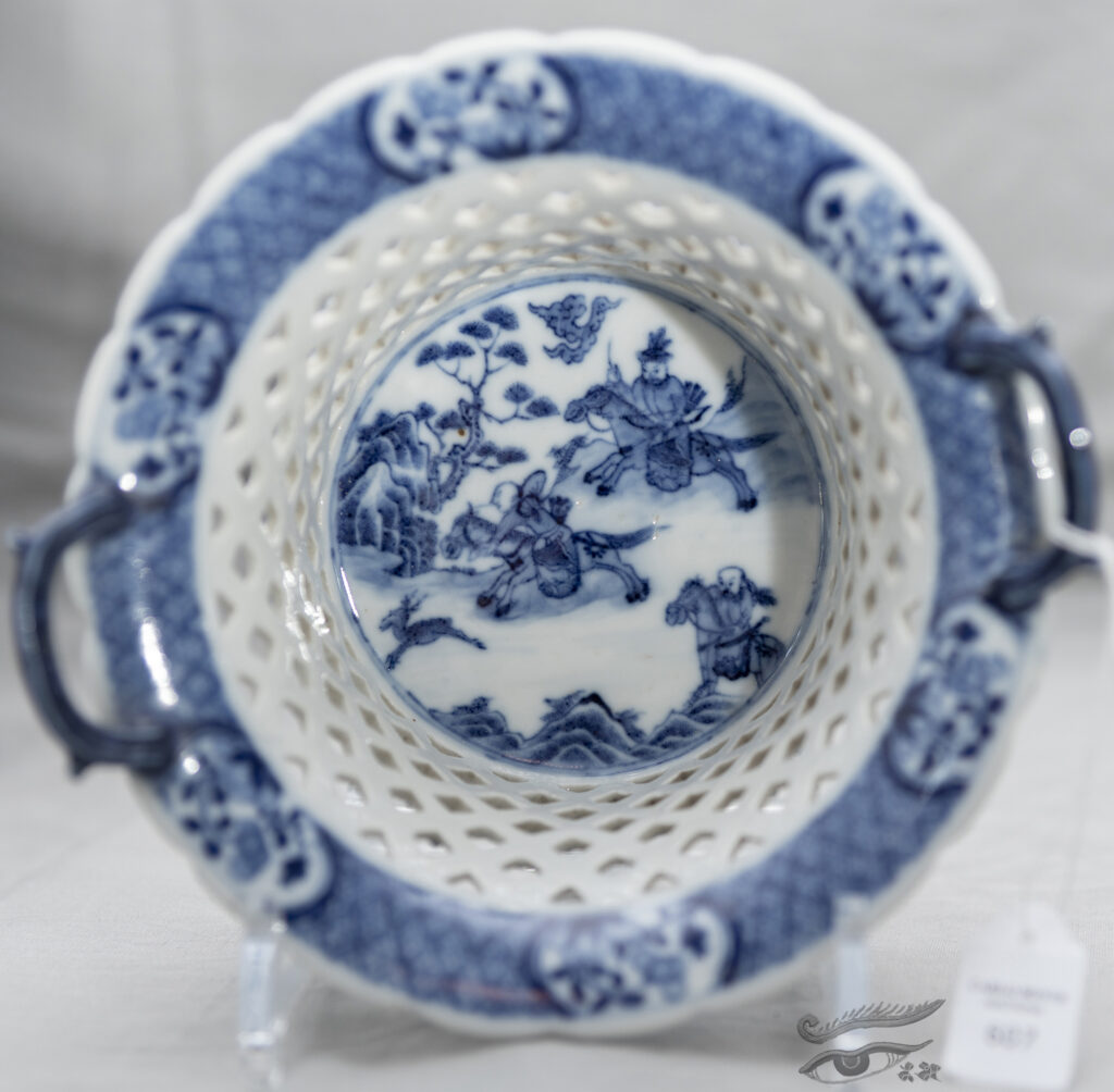 49. Blue And White Openwork ‘Hunting’ Basket 18th C 康熙青花狩猎图镂空花篮