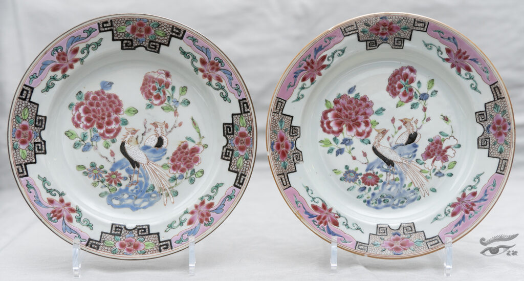 65. Pair of Chinese Famille Rose Birds and flowers Plates 18th C 乾隆粉彩雉鸡牡丹盘一对