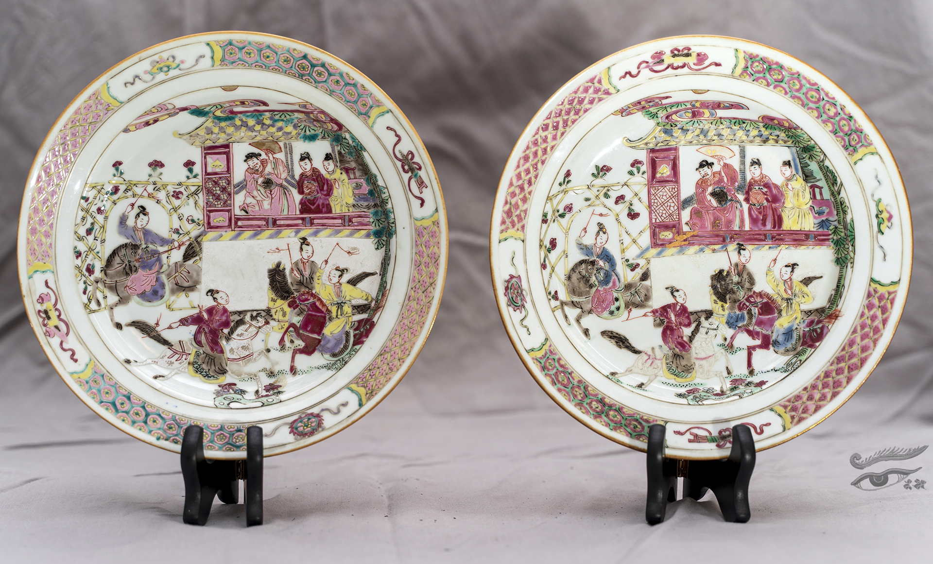 69. A pair of Chinese famille rose ‘Emperor Yang’ plates 18th C 乾隆粉彩隋炀帝游西苑人物故事盘一对 September 7, 2022March 19, 2023 lhasa.hou@gmail.com
