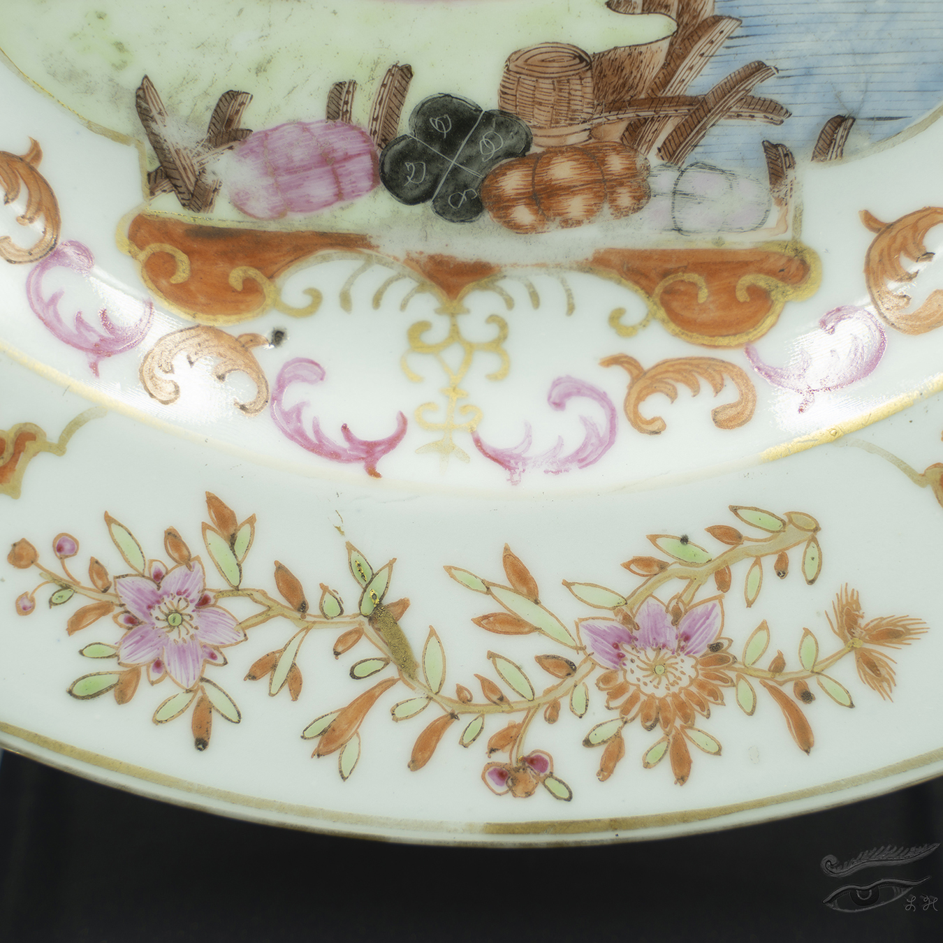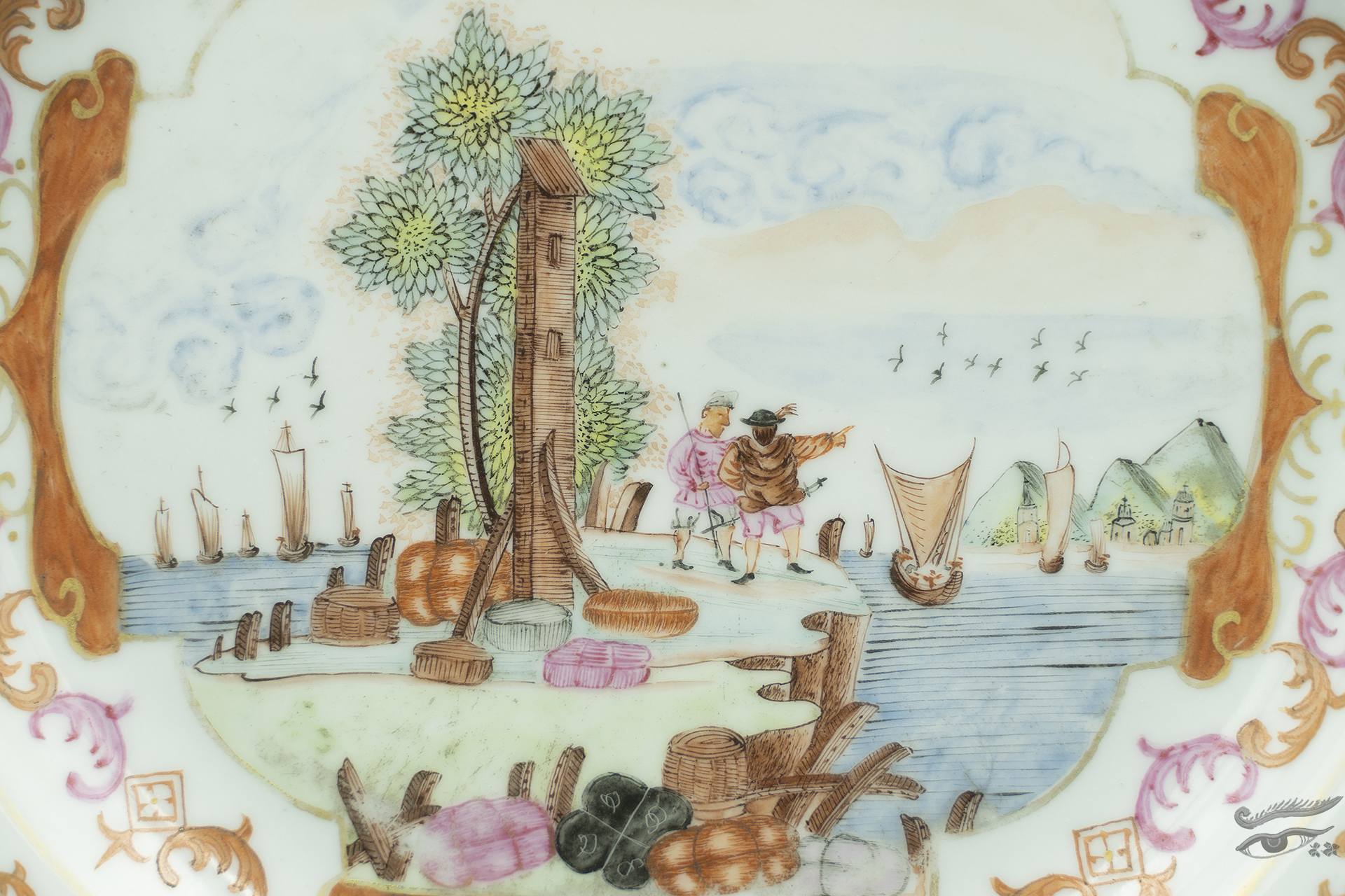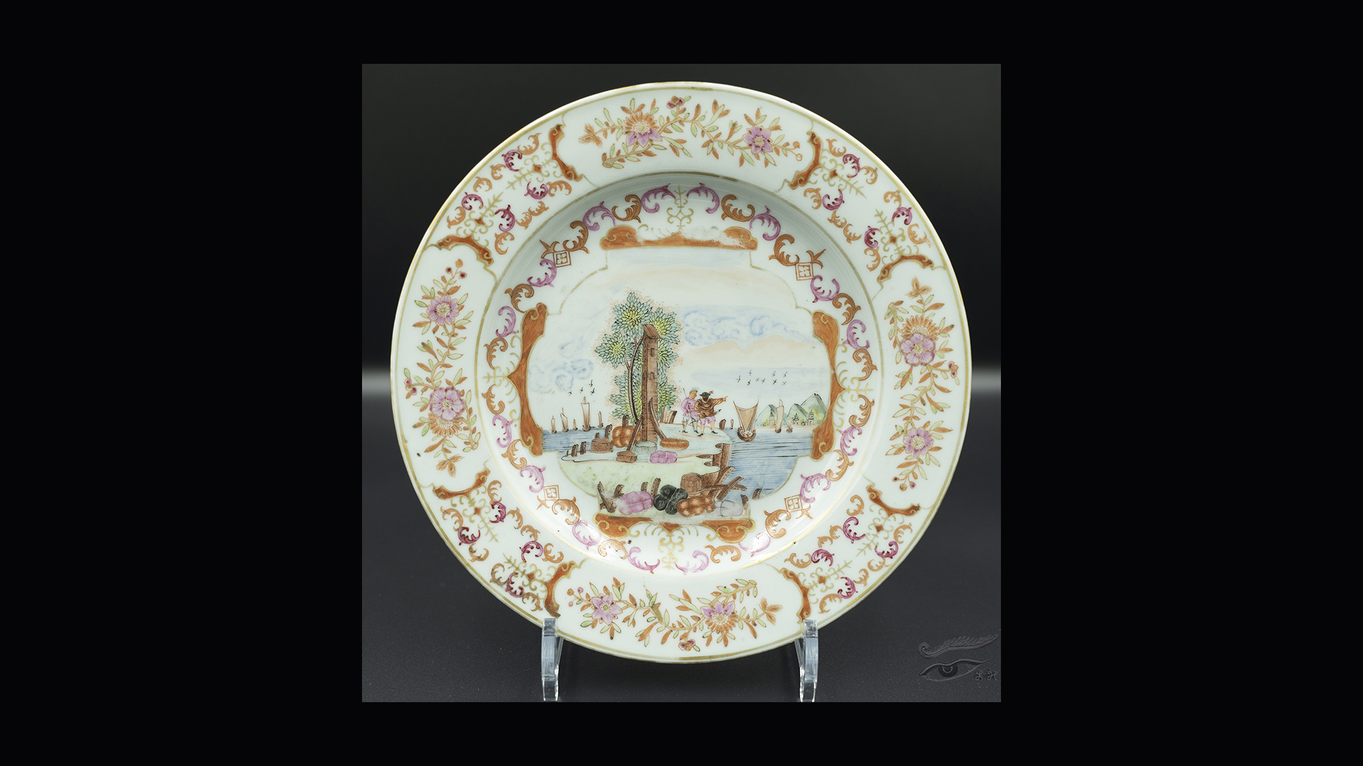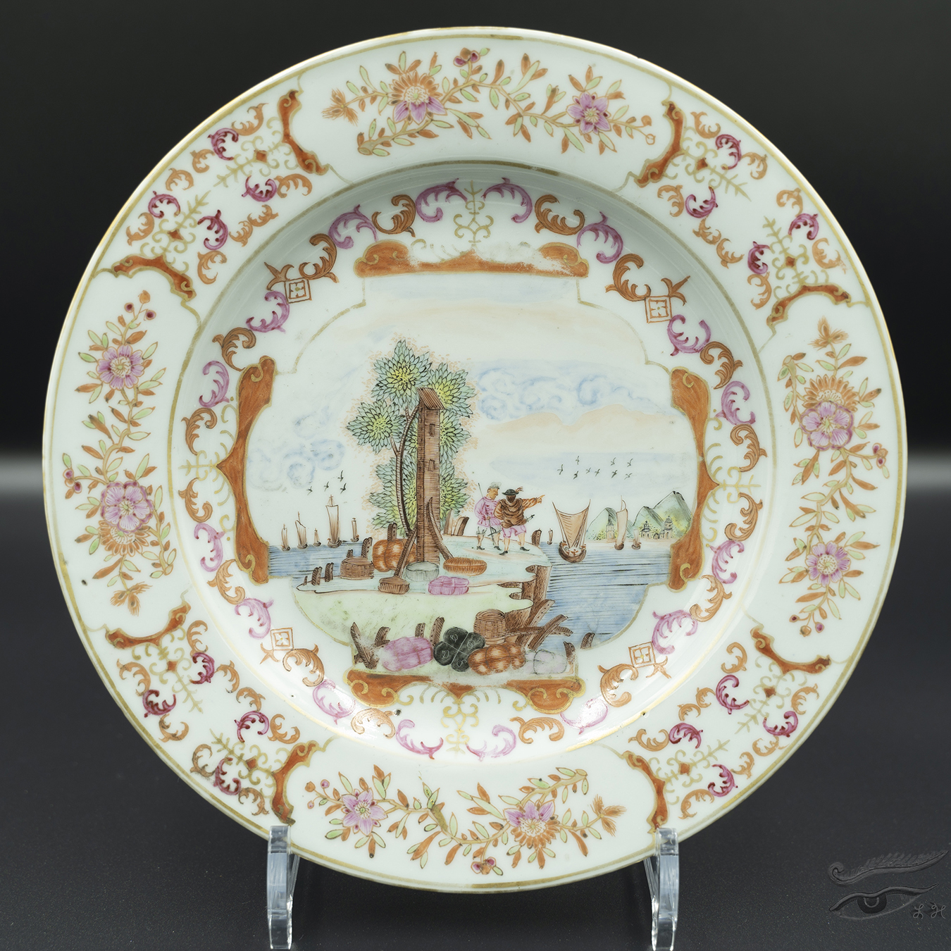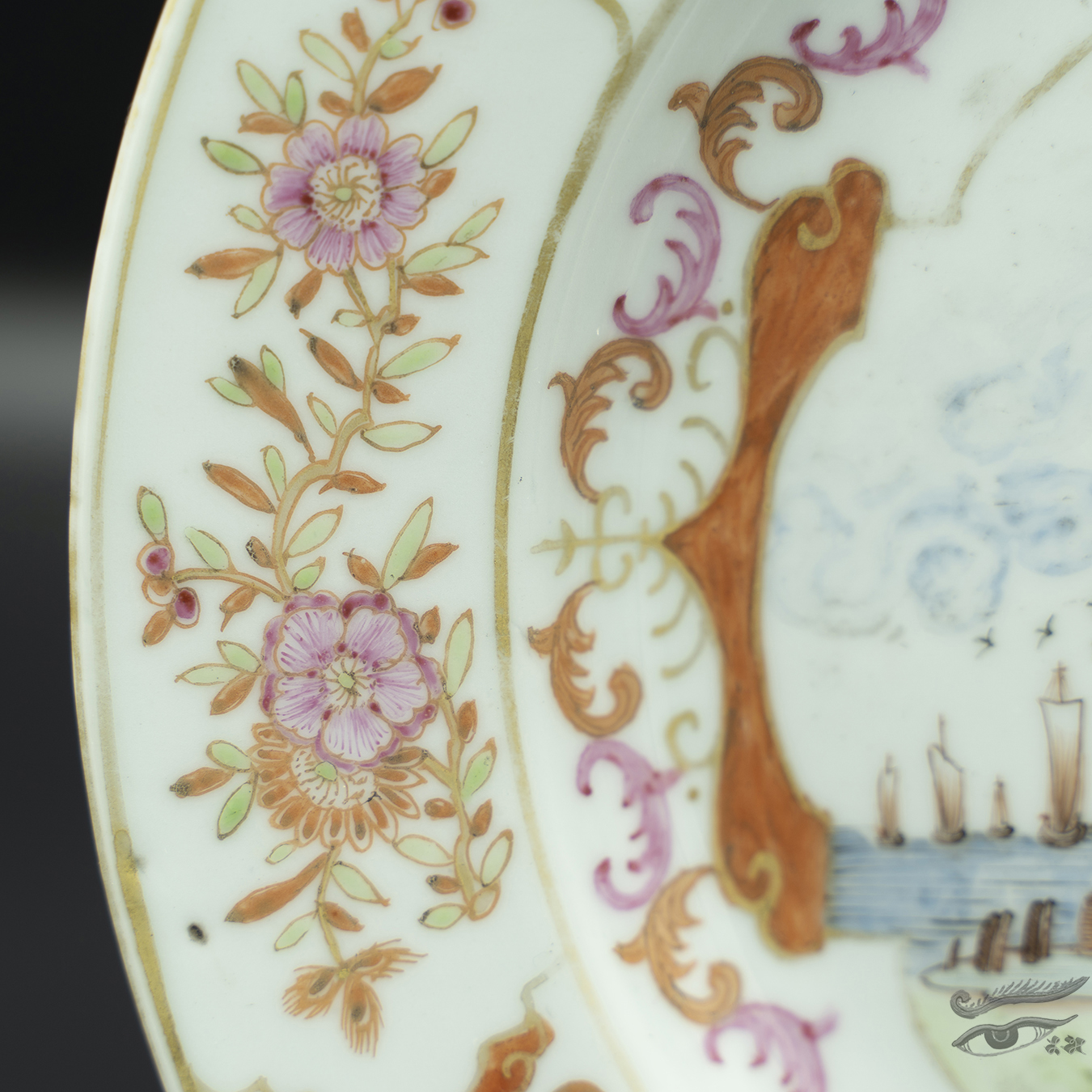 88. A MEISSEN-STYLE Faille rose plate 18th C 乾隆粉彩矾红描金‘梅森’风格港口风光盘 September 9, 2022March 20, 2023 lhasa.hou@gmail.com