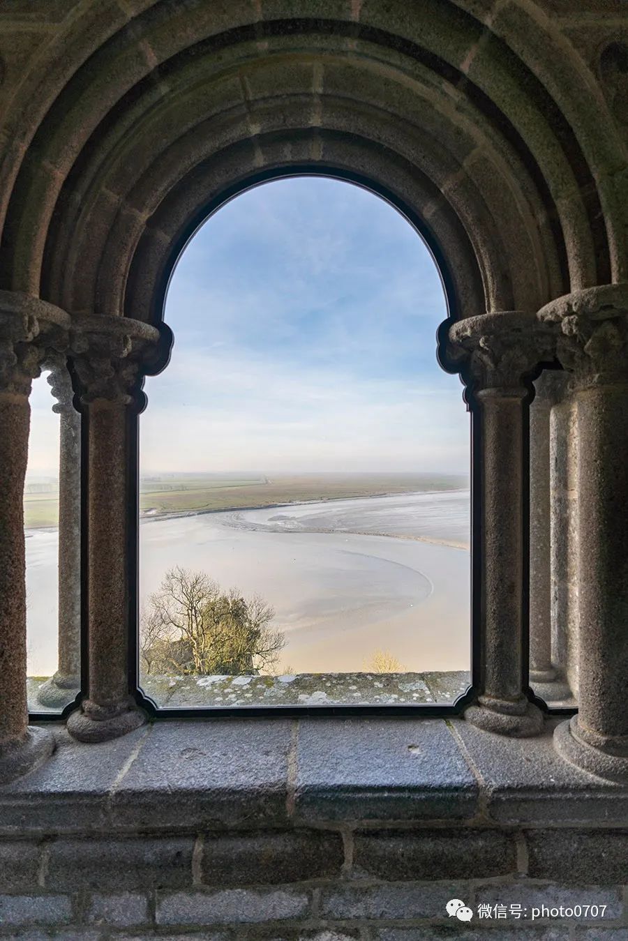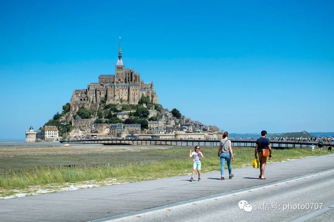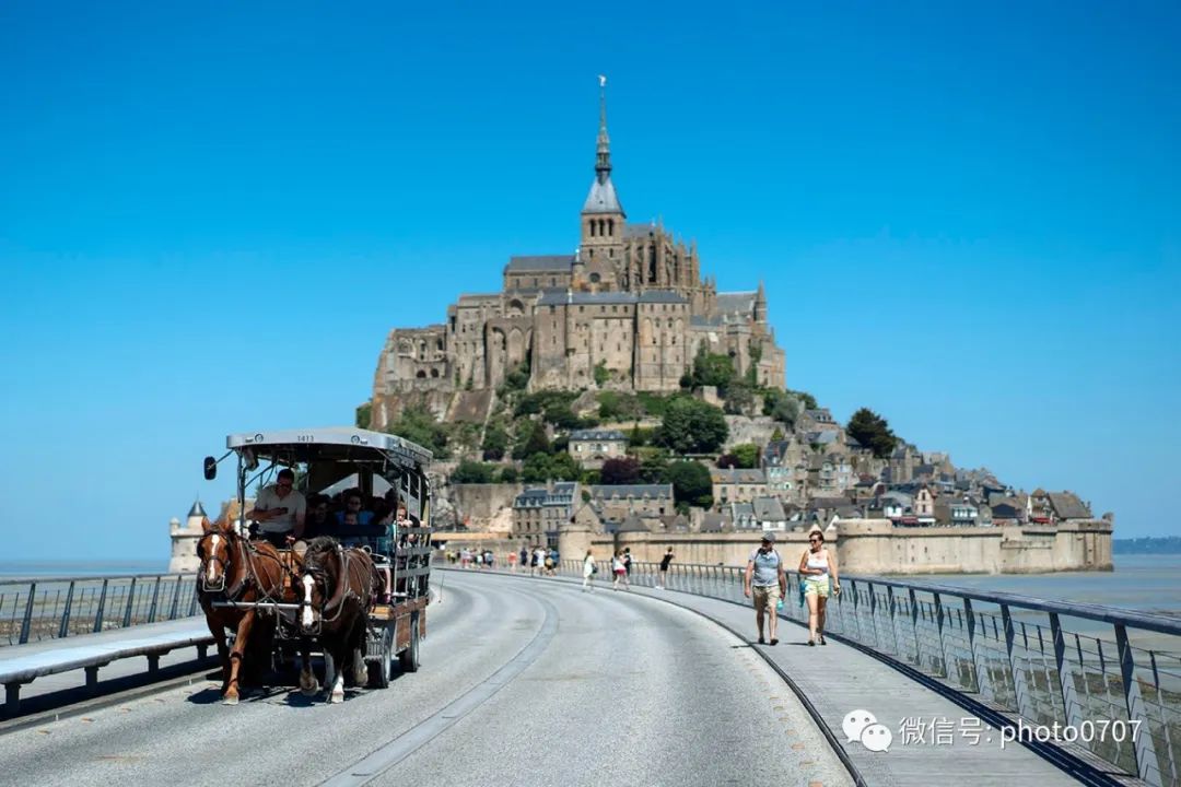 下边就是连接圣米歇尔山的长堤,可以步行、乘坐马车、或免费摆渡车通过。