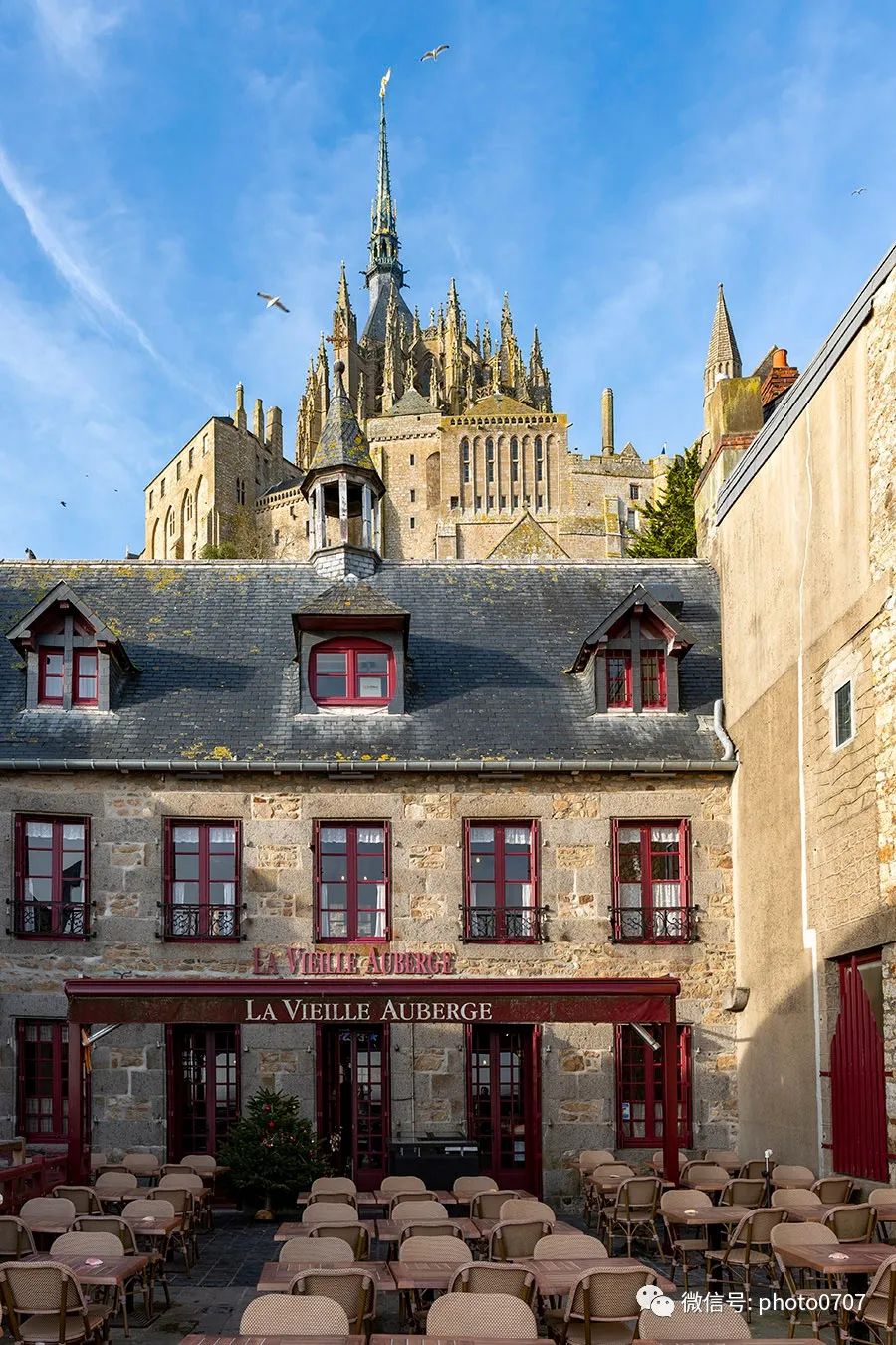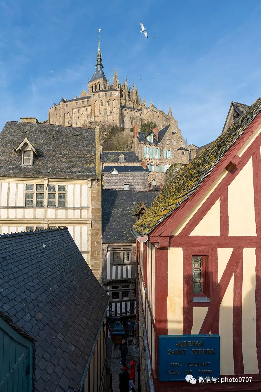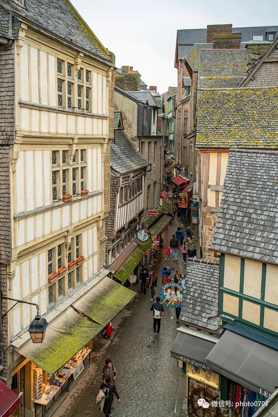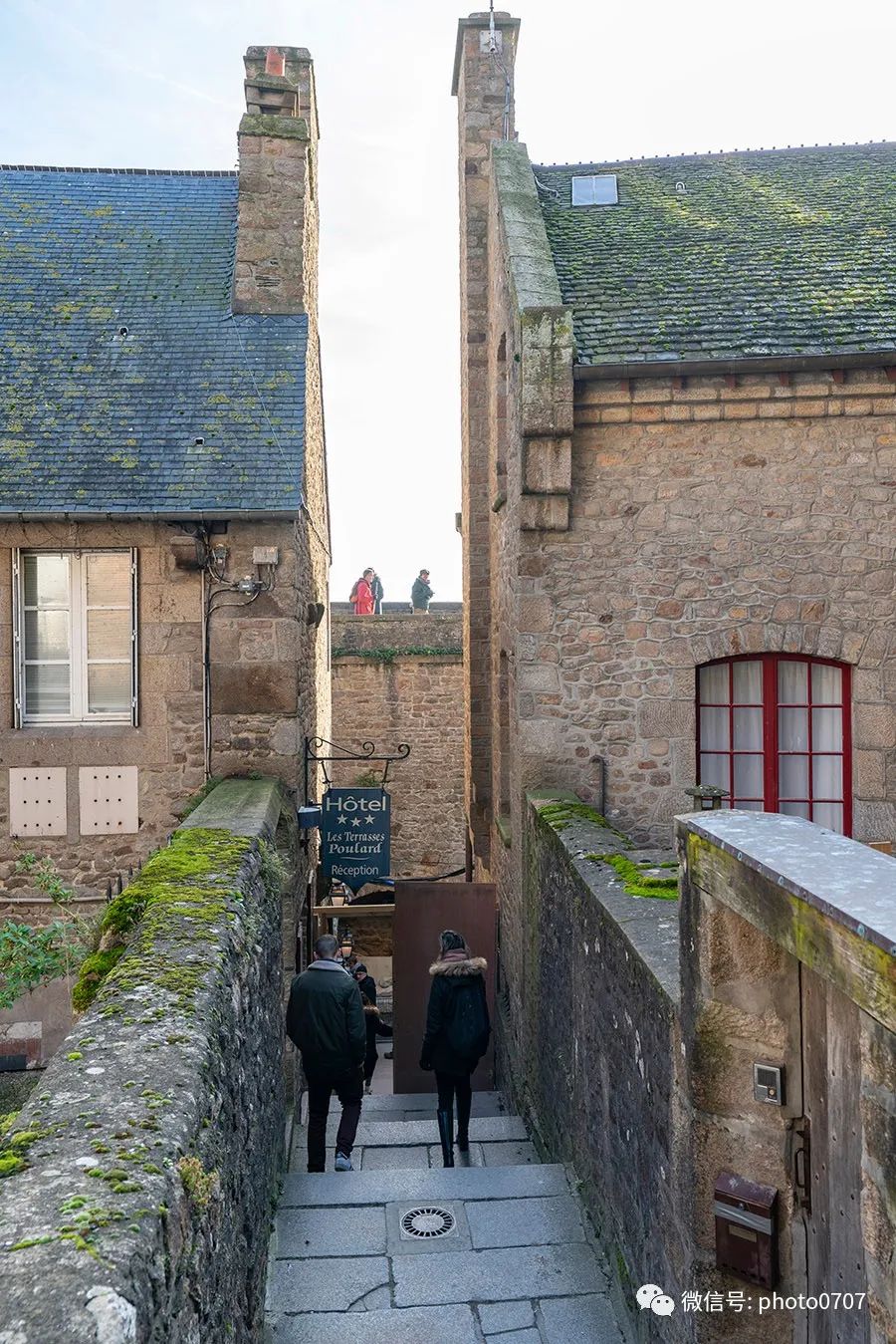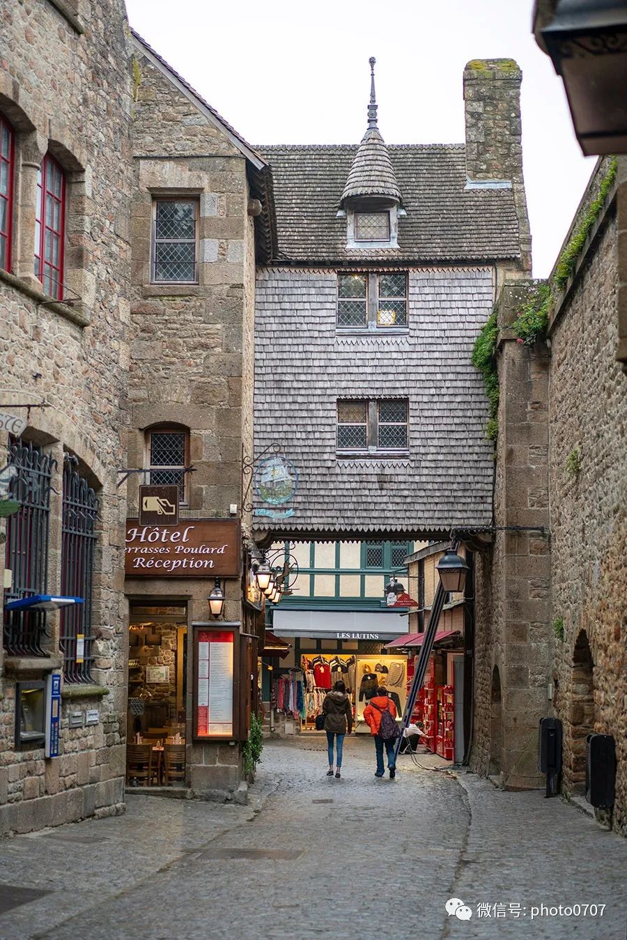 从唯一的城门进入圣米歇尔山,街道、建筑仍然保持着中世纪的风格。