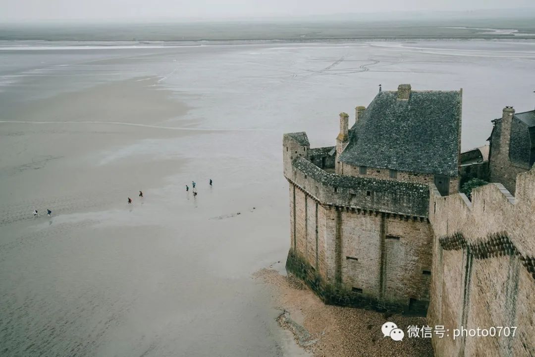 城墙外是落潮时的滩涂,涨潮时就成了海水。这里还有很多条滩涂徒步线路,可以绕岛一周,也可以走十几公里来回六个小时到另一座岛屿,但一定要请当地的向导,因为必须要熟知潮水的时间和规律。