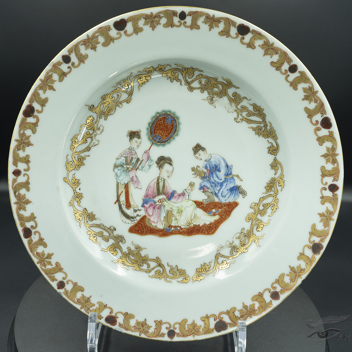 159. A Plate Famille Rose with Figures 18th C Yongzheng Period, 雍正贵妃醉酒赏盘 January 25, 2023February 26, 2024 lhasa.hou@gmail.com Note: 《貴妃醉酒》描寫的是唐玄宗寵妃楊玉環與明皇約在百花亭赴筵,久候明皇不至,原來他早已轉駕西宮。貴妃羞怒交加,萬端愁緒無以排遣,遂命高力士、裴力士添杯奉盞,飲致大醉,悵然返宮。
